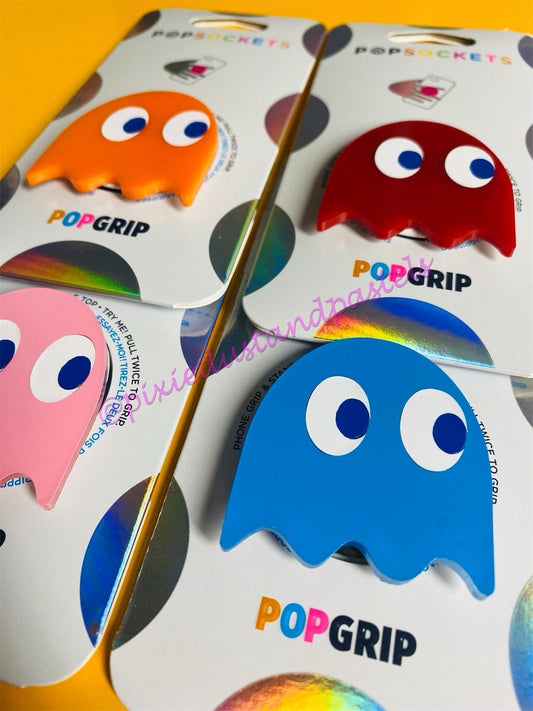 Blinky Pinky Inky and Clyde Ghost Gang - Phone Grip or Badge Reel - A retro 1980's Pac Vibe Man - Video Game