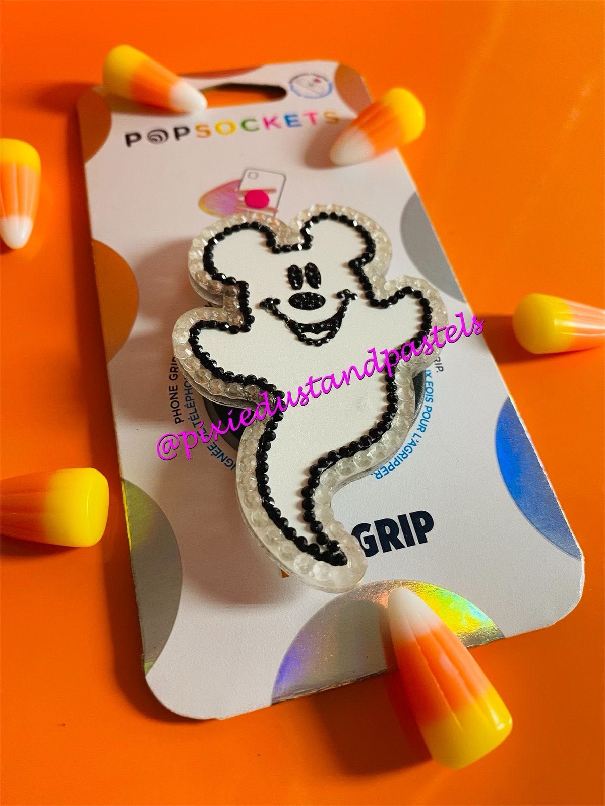 Halloween Mouse Ghost Phone Grip! Cutest Ghost Badge Reel or Phone Grip! Glows!